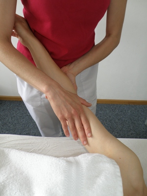 La prise en charge de l’œdème consiste en du drainage manuel (anciennement appelé DLM ou drainage lymphatique médical), des exercices circulatoires couplés si nécessaire à des mesures de contention (bandages multicouches puis bas/manchons de compression). L’application spécifique de tape élastique peut être associée au traitement.